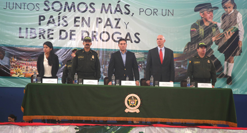 En el marco de la Estrategia Integral Contra el Narcotráfico, el Ministro de Defensa, Juan Carlos Pinzón Bueno y el Director de la Policía Nacional, General Rodolfo Palomino López, clausuraron el Programa Escolarizado de Prevención al Consumo de Drogas y la Violencia, implementado por la Policía Antinarcóticos, en la localidad de Bosa, de la ciudad de Bogotá.Al evento, que se realizó en el Coliseo León XIII, ubicado en límites con el municipio de Soacha, asistieron 6.000 personas, entre estudiantes (4.500), docentes (195) y padres de familia (1.300), de las 7.800 fueron sensibilizadas sobre los beneficios y bondades de mantenerse libres del consumo de drogas. El programa de la Policía Antinarcóticos permite, también, que las comunidades más vulnerables construyan espacios de convivencia, en los cuales predominen hábitos y estilos de vida saludables.Esta intervención integral a la localidad de Bosa, se inició el pasado mes de Julio y contó con la participación de 8 instituciones educativas distritales de Ciudad Bolívar, Bosa y Soacha (Luis López de Mesa, Grancolombiano, Benedicto XVI, Fernando Mazuera, Cedid San Pablo, Carlos Albán Holguín, Sierra Morena y Pablo De Tarso), al igual que con 60 policías instructores, encargados de enseñar las diferentes temáticas, directamente en los salones de clase.Asimismo, a los padres de familia y docentes se les brindó herramientas para abordar asuntos como el de las drogas, la violencia y el bullying, entre otros, para que puedan reforzar el trabajo de prevención con sus hijos en cada uno de los hogares, generando responsabilidades compartidas.Por otro lado con el fin de fortalecer el desarrollo del programa y originar un mejor entendimiento del mensaje preventivo entre los participantes, la Policía Antinarcóticos empleó estrategias tecnológicas y lúdicas, como el bus interactivo y la ciudadela de la prevención. Durante la clausura, estudiantes, profesores y padres de familia, recibieron un diploma que los acredita como ciudadanos ejemplares, comprometidos, con su entorno y la sociedad, a no involucrarse en el consumo de las drogas y la violencia.Datos importantes sobre el Programa Escolarizado de Prevención al Consumo de Drogas y la Violencia:Esta actividad de la Policía Antinarcóticos, recibió en España, el 25 de noviembre de 2013, el premio Reina Sofía Contra las Drogas, al ser reconocido como el mejor Programa Iberoamericano en Prevención. Desde 1997 al año 2014, se han capacitado más de 3.255.000 personas, entre, estudiantes, docentes y padres de familia. Al programa se han vinculado 991 instituciones educativas y 317 policías, que laboran en las diferentes Metropolitanas y Departamentos, recibieron capacitación como instructores en prevención de drogas. Durante el presente año, se han capacitado más de 167.000 estudiantes en todo el país con los diferentes módulos del programa escolarizado de prevención: Aprende Jugando, Aprende a Valorarte, Educar y Prevenir, Toma el Control de tu vida, Bachillerato y Padres de Familia.