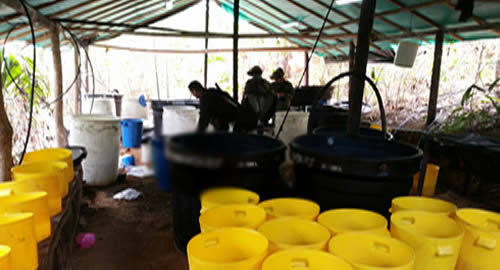 ​​En cumplimiento de la Estrategia de Intervención Integral Contra el Narcotráfico, y mediante labores investigativas adelantadas en el departamento de Córdoba, uniformados de la Dirección de Antinarcóticos  de la Policía Nacional lograron la ubicación, judicialización y posterior destrucción de un laboratorio utilizado para el procesamiento de estupefacientes, así como la incautación de clorhidrato de cocaína, base de cocaína e insumos químicos. El operativo se desarrolló en zona rural de la vereda Santa Elena, jurisdicción del municipio de Montelibano, departamento de Córdoba, después de recopilar la suficiente información que permitiera la ubicación de una estructura narcotraficante en la cual se procesaban estupefacientes, que de acuerdo a las investigaciones, pertenecían a la organización narcotraficante "clan Úsuga", ubicado en esta zona del país. Una vez planeada la operación helicoportada con el apoyo de integrantes del grupo de Policía Judicial, Aviación Policial y Comandos Jungla de la Dirección de Antinarcóticos, se ubicó el sitio con relación a las coordenadas establecidas, encontrando una estructura utilizada como laboratorio para el procesamiento de estupefacientes compuesto por seis construcciones rústicas en madera y plástico negro, ocultas en la espesa vegetación de la zona, en las cuales se hallaron 36 kilos de clorhidrato de cocaína, 99 kilos de base de cocaína, 272 galones de insumos líquidos y 265 kilos de insumos sólidos. Con este operativo de destrucción e incautación se afectan las finanzas de la organización narcotraficante en aproximadamente 172 millones de pesos (36 kilos de clorhidrato de cocaína), 179 millones (99 kilos de base de cocaína), 44 millones (272 galones de insumos líquidos) y cuatro millones (265 kilos de insumos sólidos). La Policía Nacional durante el 2016, ha logrado la ubicación y destrucción de 367 laboratorios para el procesamiento de base de cocaína y 11 de clorhidrato de cocaína en el territorio colombiano.