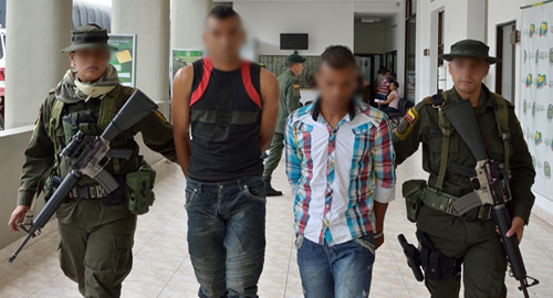 Valle de Toledo, Antioquia. Al momento de ser interceptados transportaban dos granadas de fragmentación en el sillín de una motocicleta.