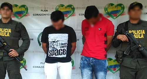 Puerto Gaitán. En flagrancia fueron capturados dos presuntos delincuentes del crimen organizado bloque Libertadores del Vichada.