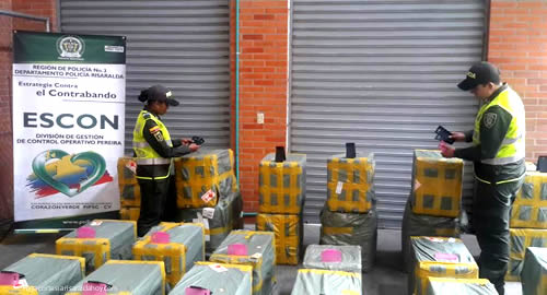 La Policía Fiscal y Aduanera y la Dirección de Impuestos y Aduanas Nacionales (Dian), propinaron un fuerte golpe al contrabando de celulares en los departamentos de Risaralda y Quindío. En los operativos se aprehendió mercancía consistente en 4.400 celulares y 138.000 accesorios para los equipos móviles por un valor de 1.668 millones de pesos. La mercancía fue aprehendida en puestos de control en vías del Eje Cafetero; Todo indica que al parecer los contrabandistas escondieron los celulares dentro de cajas tapándolos con canecas de color azul para disuadir los controles de los uniformados.Sin embargo al detectarla se evidenció que esta mercancía no se encontraba amparada en declaración de importación o documentos que acreditaran su legal introducción al territorio nacional. Finalmente estos productos que eran transportados desde la ciudad de Bogotá y tenían como destino final Ipiales y Buenaventura, además las investigaciones de las autoridades indican que los elementos aprehendidos eran de procedencia China.
