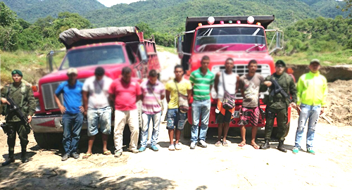 En cumplimiento a la estrategia institucional contra la explotación ilegal de yacimientos minero, en Operación "Sierra" Fase VII, personal adscrito a la Sección de Operaciones Especiales de Hidrocarburos No.1 Fundación, intervinieron una mina de explotación de material de arrastre, en el km 4 vía alterna barrio Cristo Rey vereda El Limón de Santa Marta-Magdalena, donde fueron sorprendidas (08) ocho personas, momentos en que realizaban excavación y movimiento de arena, con la cual estaban realizando actividades de cargue por medio de 02 vehículos tipo volco, sin cumplir con los requisitos para ejercer esta actividad.Los capturados, vehículos y elementos incautados fueron dejados a disposición de la autoridad competente por el delito de explotación ilegal de yacimientos mineros y otros materiales.