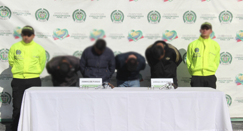 Los cinco miembros de la banda fueron capturados en momentos que 'asaltaban' una ferretería, quienes fueron reducidos en los techos del sector, una mujer que pertenecía a la organización cayó de altura tratando de huir.Desde marzo de este año, se habían recepcionado 17 denuncias en donde víctimas de diferentes casos de hurtos a residencias y establecimientos comerciales en localidades del norte de la ciudad, daban cuenta de cuatro hombres y una mujer que se movilizaban en un vehículo de alta gama, quienes realizaban 'atracos' de manera violenta e intimidando y amenazando con armas de fuego.Lo particular es que los hurtos los realizaban en su mayoría a altas horas de la noche y siempre su huida era un carro gris o plateado del que nadie observaba la placa o matricula.Las denuncias de los afectados y el trabajo investigativo realizado por algo más de seis meses, llevó a los investigadores a reaccionar de manera inmediata, luego de recibir una llamada en donde la ciudadanía afirmaba que posiblemente estos delincuentes se encontraban realizando un singular atraco a una ferretería del barrio La Chucua en la localidad de Suba.Cuando nuestros uniformados llegaron al sitio, se encontraron con cinco peligroso delincuentes quienes para evitar ser capturados 'volaron literalmente' por los techos para huir de la inminente captura.El cabecilla de la banda y quien cuenta con siete anotaciones, cuatro por tentativa de homicidio, dos por hurto y una por porte ilegal de estupefacientes fue capturado ante el gran asedio policial al Igual los otros miembros de la banda quienes sumaban 27 anotaciones por diferentes delitos.Otro aspecto que causó sorpresa a los investigadores, fue el hecho que el vehículo en que se movilizaban y en el que transportaban las dos armas de fuego, tenía un sistema que hacía posible esconder o cambiar rápidamente los números de la matricula de éste.Invitamos a todos aquellos ciudadanos o comerciantes que fueron víctimas de estos delincuentes a que denuncien en la Estación de Policía más cercana a fin que respondan por todas sus actuaciones delincuenciales.
