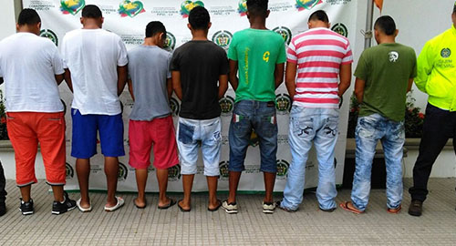 En una importante operación desarrollada por nuestros uniformados adscritos a la Seccional de investigación Criminal e INTERPOL en busca de la desarticulación de estructuras dedicadas al tráfico de estupefacientes en menores cantidades, lograron la captura de 7 personas las cuales estaban siendo solicitadas por delitos tales como concierto para delinquir y trafico fabricación porte de estupefacientes.Este importante operativo se logra luego de una destacada actividad investigativa por parte de nuestros Policías en coordinación con autoridades Judiciales, en la que luego de tareas de inteligencia se logra establecer que alias "juguero", era el encargado de dar órdenes a los demás expendedores para la distribución de las dosis de estupefaciente, esta persona era cabecilla principal de esta organización delincuencial. Luego de su detención se logra también dar con la captura de siete personas más reconocidas con los alias de "ñaña, Cartagena, piñata, rebolio", entre otros, los cuales estaba encargados de la distribución de la mercancía ilegal.La modalidad que utilizaban estas personas, era empacar la sustancia en pequeñas bolsas plásticas cerradas herméticamente y marcadas con un sello a fin de realizar control de las ventas, luego camuflaba la mercancía en partes estratégicas del exterior de algunos vehículos así como también la escondían debajo de escombros, de acuerdo al lugar donde se estuviera haciendo la distribución del alcaloide. De acuerdo a otras labores de inteligencia, la organización delincuencial al parecer hace parte de las finanzas del clan narcotraficante usuga. Finalmente los capturados fueron puestos a disposición de la las autoridades judiciales donde fueron cobijados con medida de aseguramiento.