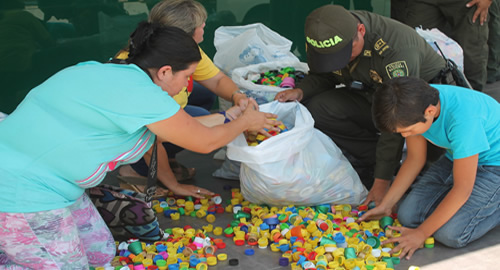 Contribuir en el desarrollo de las comunidades vulnerables hace parte de la misión que tiene la Policía Nacional, por ello continúa apoyando la campaña de recolección de tapas plásticas para ser entregadas a esta fundación del hospital Erasmo Meoz.En cada una de las instalaciones de los Comandos de Atención Inmediata (CAI), Subestaciones, Estaciones, Distritos y el Comando de Policía San Mateo, se han habilitado puntos de recolección, donde diariamente son depositadas las tapitas recicladas por los uniformados en sus lugares de trabajo, hogar y sectores donde prestan sus servicios.Como resultado de estas actividades en lo que va corrido del año se han aportado 2.4 toneladas de "tapitas de vida" que se suman a las donaciones que la comunidad voluntariamente aporta a esta causa social y que se convierten en una mano amiga para los niños, niñas y adolescentes que se benefician de los programas de la fundación, traducidos en medicamentos, auxilio de transporte, soporte nutricional, apoyo psicosocial y actividades recreativas.La Institución policial trabaja arduamente para aportar un granito de arena este próximo 17 de octubre en la biblioteca pública Julio Pérez Ferrero, donde se espera recolectar gran cantidad de tapitas.