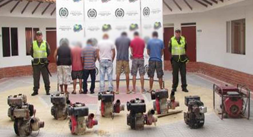 Personal de la Seccional de Inteligencia en coordinación con la Unidad Básica Investigación Criminal y en cumplimiento a la Estrategia de Intervención Integral contra la Explotación Ilícita de yacimientos mineros; desarrollo la "Operación Minero", logrando la captura en flagrancia de siete personas, por los delitos de explotación ilícita de yacimiento minero, daño a los recursos naturales y contaminación ambiental.Ejerciendo control sobre los principales puntos de mayor afectación en lo referente a la protección de los recursos naturales, la policía de Santander realizó la intervención policial en la vereda el robledo sector conocido como quebrada Santos Gutiérrez, del Municipio de Sabana Torres, donde mediante información de la ciudadanía del sector, ponen en conocimiento de las autoridades de la explotación de manera ilegal de un yacimiento minero en ese sector.Los uniformados se dirigen al lugar logrando la captura de estas personas que utilizaban motobombas y maquinaria amarilla para la extracción de oro, dejando un daño ambiental significativo el cual es de gran importancia debido a que ésta quebrada abastece la actividad agropecuaria del sector y conserva diversas especies.En el operativo se logra la incautación de ocho motobombas una planta eléctrica marca y una retroexcavadora marca color naranja avaluadas en $265.900.000. Los capturados y elementos incautados fueron dejados a disposición de la Fiscalía.Estos hechos ilícitos pueden ocasionar al ecosistema daños irremediables.