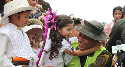 Paralelo a las acciones operativas y de prevención que se realizan, la institución se vinculó a las fiestas con personajes y comparsas alusivos a cada festejo. Salamina, Pacora, Aranzazu, fueron los sitios en que la Policía con sus hombres y mujeres se integraron con la comunidad y turistas.La creatividad fue importante para la cercanía vivida ya que las carrozas que rodaron por las principales calles de estos municipios, tuvieron la aceptación de sus habitantes quienes aplaudían al paso de la imagen institucional. Acudiendo a las destrezas y cualidades artísticas de los integrantes de la institución, varios de ellos estuvieron presentes en los desfiles en los tradicionales "zancos", cuyo fin es divertir a los espectadores.Mujeres de la Policía hicieron gala de su belleza, lucieron trajes de chapolera en homenaje a esta región cafetera y sus raíces, al lado de abuelos que también vistieron los colores de la institución y desfilaron ante el público presente.La Policía Nacional, seguirá en la búsqueda de espacios para la integración con la comunidad, apoyando la cultura y tradiciones de cada municipio, participando directamente y aportando vínculos que generen diversión, colorido y fomenten la convivencia y seguridad ciudadana.