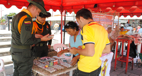 La Policía Metropolitana a través del Grupo de Carabineros y Técnicos Agropecuarios, realizó este fin de semana en el parque Guadalupe Zapata, un encuentro de "Mercados Campesinos", en cual se presentaron a la comunidad los diferentes proyectos y productos agrícolas, los cuales se logran bajo la asesoría de los funcionarios policiales en cada uno los sectores rurales del Área Metropolitana. Entre los principales productos que fueron comercializados se encontraban deferentes hortalizas y legumbres como rábanos, cebollas francesas, repollo, la novedosa planta hibrido de cebolla y ajo en un solo tallo, lechuga Japonesa, huevos de gallinas alimentas a base de pastoreo, mojarra roja, además de derivados lácteos, queso, yogurt y mantequillas.En cada uno de los stand o puestos de mercado las personas además de tener la posibilidad de adquirir los productos, recibían información relacionada con los proyectos agropecuarios de la Policía; los técnicos agropecuarios mediante conferencia, videos y ayudas audiovisuales ilustraron a la ciudadanía el antes durante y después de cada etapa de producción que se llevan a cabo en la zona rural del Área Metropolitana de Pereira, invitando a los asistentes para que se vinculen y conozcan de nuevas alternativas agropecuarias que les permitan mejorar su producción agropecuaria. La Policía Metropolitana de Pereira invita a la comunidad del Área Rural para que tomen contacto con los policiales adscritos a estos programas y se vinculen con los proyectos productivos de cada vereda y corregimiento en aras de aportar a la conservación del medio ambiente, convivencia y seguridad ciudadana.