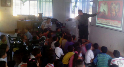 En el municipio de El Castillo, uniformados lideran el programa D.A.R.E, estrategia que promueve buenos hábitos y valores en los menores de edad como peldaño en la lucha contra la delincuencia. Es así que estos niños y niñas recibieron dos capacitaciones a la semana de dos horas cada una, espacio a través del cual los Policías dictaron charlas sobre prevención y del consumo de drogas, recomendaciones de seguridad y fortalecimiento de principios y valores como principal núcleo dentro de una sociedad pacífica y solidaria.Cabe destacar la activa participación de padres de familia como protagonistas en el correcto desarrollo personal de quienes son el futuro de nuestro país.