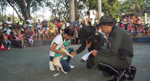 En la plazoleta del parque Santander, Guías Caninos de la Policía Nacional llevaron a cabo un especial concurso de perros, en el cual sus propietarios pudieron dar rienda suelta a la imaginación y creatividad al momento de expresar su amor y sentimientos hacia ese compañero fiel en que se convierten los canes.Durante la exhibición fueron premiados: el perro más grande, más pequeño, más parecido a su dueño, mejor disfrazado, entre otras categorías que surgieron en el desarrollo mismo del evento, el cual contó con la presencia y participación de un importante número de ciudadanos que acogieron con beneplácito la iniciativa institucional de promover espacios que motiven y eduquen de forma didáctica y amena frete a las responsabilidades y cuidados que se debe tener con estos amiguitos. El evento fue patrocinado por el sector comercio que se unió con detalles entregados a los asistentes; empresas que apoyan y acompañan a su Policía Nacional en acciones de tipo social que representan la gestión de espacios para la convivencia pacífica.