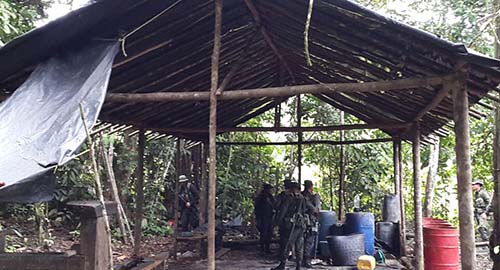 ​A través de nuestro Escuadrón Móvil de Carabineros, adscrito al Departamento del Chocó, realizamos un duro golpe al narcotráfico, al lograr la ubicación y destrucción de un laboratorio para el procesamiento de clorhidrato de cocaína. Los hechos se registraron en área rural del municipio Istmina, donde se   halló un cultivo de hoja de coca aproximadamente de  800 plantas,  10 pimpinas con  acpm y  con sustancia  no identificada, además de prensa artesanal empleada para el procesamiento de la coca.El procedimiento se efectuó, mediante actividades de registro, control y  gracias a la información de la ciudadanía.Seguiremos la lucha en contra de los cultivos ilícitos, principal fuente de financiación de los grupos organizados al margen de la ley. Este importante  resultado nos permiten dar un paso más en el fortalecimiento de la seguridad y la convivencia ciudadana  en el  Departamento del Chocó.