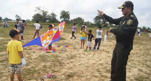 El Comando de Policía Amazonas en coordinación con el personal de Policía de Prevención Ciudadana, y el Grupo de Carabineros, con el apoyo del sector comercio de la ciudad, llevaron a cabo el Festival Internacional de Cometas.La actividad sirvió como escenario para la creatividad y participación comunitaria, donde se realizó la premiación a la cometa más grande, más pequeña, más vistosa, gracias a los obsequios donados por algunos comerciantes de la ciudad que acompañan a La Policía Nacional en la gestión de eventos y espacios para la integración y fortalecimiento de los vínculos de la familia, como estrategia para brindar a los hogares alternativas de recreación y alejarlos así de los focos de desorden social que amenazan a la juventud.Nuestros uniformados del grupo de Carabineros y los auxiliares bachilleres de la modalidad de prevención brindaron la orientación necesaria y acompañaron a los padres y madres de los más de 500 niños y niñas que participaron en esta actividad.