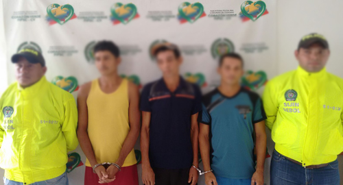 Nuestros uniformados adscritos a la SIJIN llevaron a cabo una serie de seguimientos e investigaciones el cual les permitió colocar en marcha un operativo con personal en cubierto con la finalidad de recopilar material probatorio técnico y testimonial, fundamental para que las autoridades judiciales expidieran ordenes de capturas en contra de tres hombres, con edades entre los 30 y 38 años de edad.Según las investigaciones estas personas se hacían pasar como integrantes de un grupo guerrillero y desde hace varios meses mediante intimidaciones le exigían sumas millonarias de dinero a comerciantes y campesinos de los Montes de María a cambio de no atentar en contra de la integridad de estas personas y la de sus familias.Las órdenes de capturas se hicieron efectivas en zona rural del municipio Carmen de Bolívar, los capturados fueron dejados a disposición de la Fiscalía por los delitos de extorsión, hurto Calificado y agravado.Se continuaran realizando operativos en todos los municipios del departamento con la finalidad de contrarrestar el accionar delictivo a extorsionistas en estas localidades.Invitamos a la comunidad a denunciar oportunamente cuando sea víctima de este flagelo y no entregarles o consignarles dinero a estos delincuentes que utilizan como medio la intimidación las amenazas; por esto el GAULA de la Policía Nacional dispone de un acompañamiento permanente en la línea 165.