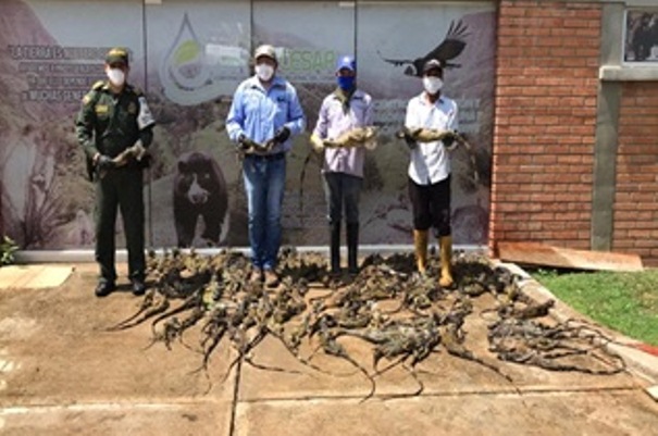 En diferentes operativos realizados por efectivos de la Policía Fiscal Aduanera (POLFA), en puesto de control ubicados en la vía que de San Diego conduce al municipio de Codazzi se realizó el pare a un vehículo tipo automóvil, al momento de su inspección se logró evidenciar que en su interior transportaba iguanas vivas de manera ilícita logrando así la recuperación de 107 iguanas con un valor ambiental en más de 500 millones de pesos, 01 vehículo incautado y 01 persona capturada por el delito de “Ilícito aprovechamiento de los recursos naturales renovables” según lo estipulado en el art 328 del Código Penal colombiano. Las iguanas quedaron en custodia de CORPOCESAR para ser reintegradas a su hábitat natural.