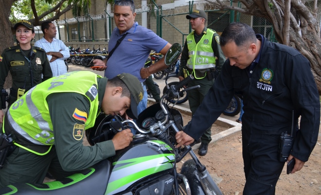 Por su parte, un funcionario adscrito a la Estación Valledupar, con equipo especializado, realiza la marcación de 60 motocicletas y 10 bicicletas, para lo cual se marcan las piezas que más se comercializan, con lo cual se busca prevenir el hurto y comercialización ilegal de las mismas; adicionalmente, un técnico profesional en automotores de la SIJIN, realiza la revisión de 30 automóviles, a fin de verificar su legalidad.