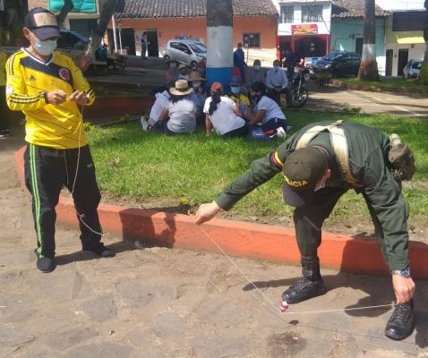 En esta oportunidad, uniformados de la Estación de Policía Consacá, acompañaron a los docentes que participaban de una jornada de manifestación con encuentros de juegos autóctonos como el trompo, la rayuela, el balero, aros y el yermis, donde jóvenes, docentes y policías le apuestan al respeto y tolerancia.