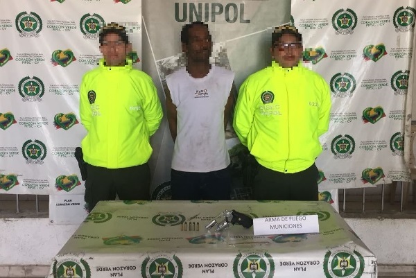 El operativo policial se desarrolló, sobre la carrera 23, donde se logra la ubicación y captura de una persona de 51 años de edad, quien tenía en su poder un arma de fuego tipo revolver de fabricación brasileña, con cacha ortopédica color negro y cinco cartuchos calibre 38; capturado y elementos materiales probatorios fueron puesto a disposición de la Fiscalía 35 de Valledupar.