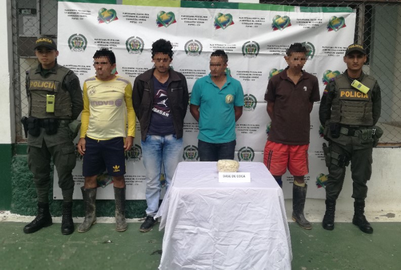 En el desarrollo operativo de la Estrategia en Contra del Tráfico de Estupefacientes en Menores Cantidades, personal policial adscrito al Modelo Nacional de Vigilancia Comunitaria por Cuadrantes de Samaniego, a través de planes de registro y control adelantados en el barrio Genoy, lograron la captura en flagrancia de cuatro personas, quienes al ser requeridos para un registro personal, se encontró en su poder un total 881 gramos de una sustancia que al ser sometida a la prueba de identificación preliminar homologada arrojó positivo para base de coca y sus derivados, de esta manera los individuos fueron notificados de forma inmediata de los derechos como personas capturadas, y presentados ante la autoridad competente, por el delito de tráfico y porte de estupefacientes.