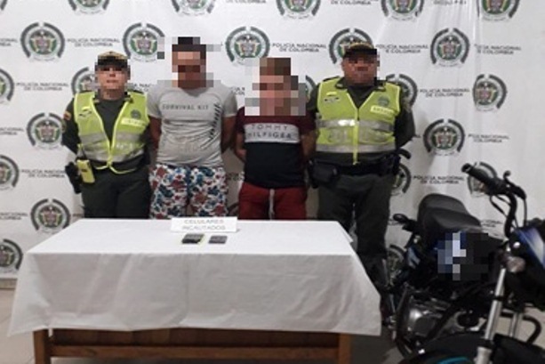 Estos ciudadanos fueron sorprendidos hurtando dos teléfonos celulares a estudiantes universitarios, momentos en que se movilizaban en la motocicleta, a estas personas detenidas se les hace saber sus derechos y posteriormente son conducidos y dejados a disposición junto con la motocicleta y los elementos recuperados ante la fiscal de turno URI por el delito de hurto calificado y agravado.