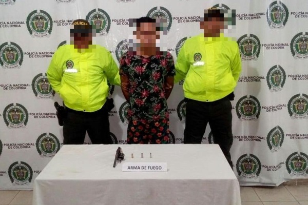 Luego de aportes de información por parte de la comunidad, retratos hablados y meses de seguimiento es detenido en la carrera 4c de este sector en flagrancia una persona, cuando intimidaba a su víctima con un arma de fuego tipo revolver calibre 32, en este instante una patrulla infiltrada inteligencia lo sorprende y lo detiene en el momento que intentaba cometer el delito.