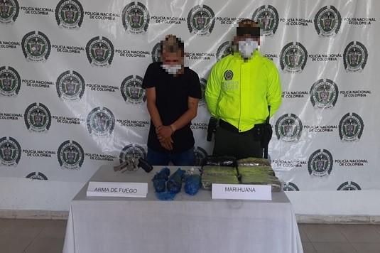 Luego de meses de seguimiento y labores de indagación, en la lucha frontal contra el microtráfico, se adelanta el ingreso a una vivienda ubicada en el sector antes mencionado, en coordinación con la fiscalía 14 Seccional, donde es detenido un ciudadano, de 29 años de edad, a quien se le halla en su poder seis kilos de marihuana, un arma de fuego tipo revólver, calibre 38 con seis cartuchos para el mismo y 124 mil pesos dinero producto de la venta comercialización.
