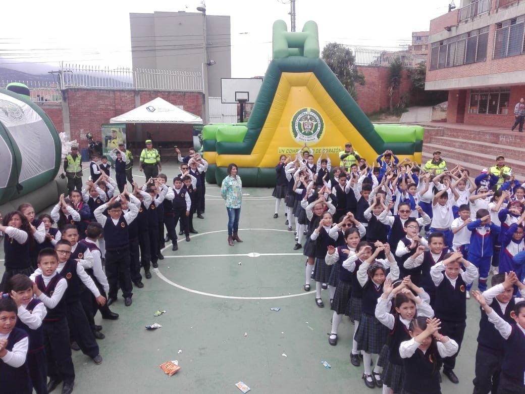 La policía Nacional por medio del Grupo de Vínculos y Relaciones estratégicas de la Oficina de Comunicaciones Estratégicas COEST de la Dirección General llevó su parque móvil y su grupo de recreación, previa coordinación con el grupo de prevención del COSEC 2 y el personal del grupo de prevención de la dirección de protección y servicios especiales y prevención seccional de transito de la Metropolitana de Bogotá, llegamos a este sector de la localidad de Ciudad Bolívar, donde realizamos la clausura del programa escolarizado en prevención de drogas y la violencia de la feria ciudadana.