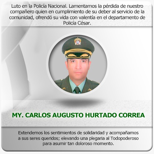 El mayor Carlos Augusto Hurtado Correa, actual comandante del GAULA en el departamento del Cesar, llegó sin signos vitales a la Clínica Erasmo, de Valledupar, luego de recibir un impacto de bala en la cabeza durante un operativo tendiente a impedir el pago de una millonaria extorsión.