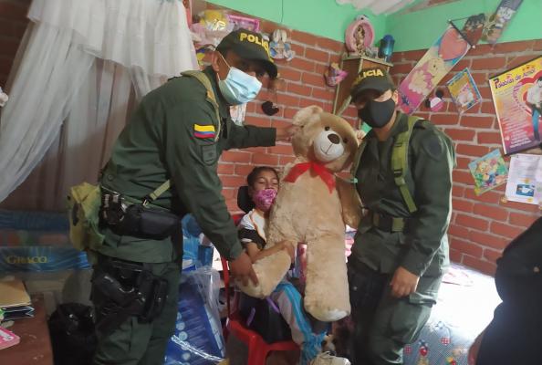 Atendiendo a nuestra vocación de servicio, valor institucional, el Grupo de Prevención y Educación Ciudadana con el apoyo de los integrantes de la Estación de Policía Consacá, visitaron el hogar de una menor de 12 años de edad con discapacidad mental, entregándole un mercado, una cobija, pañales y un oso grande de peluche, llenando sus ojos de emoción y su rostro rebosante de alegría, que hicieron de ese momento algo muy especial.