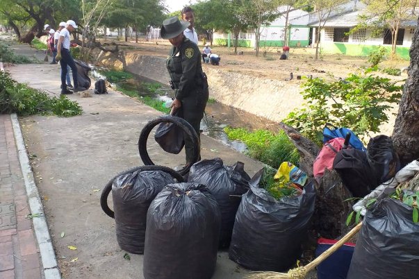 El Departamento de Policía de Cesar, comprometido con la protección del agua, como recurso primario para la vida, lideró una jornada de Limpieza y reforestación en acequias en el sur de la ciudad, donde se recogieron más de una tonelada de basuras y se sembraron 100 árboles.