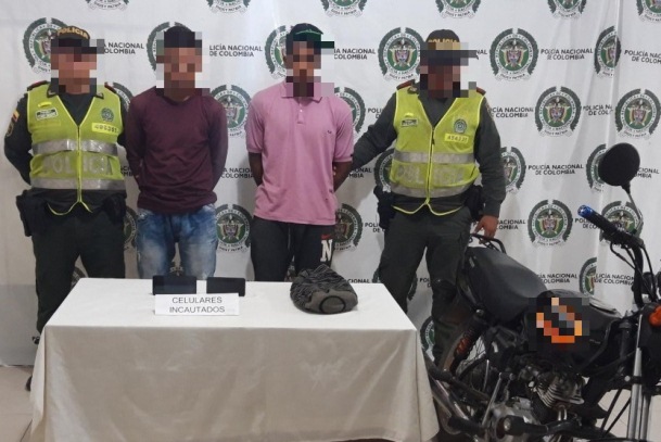 La Policía Nacional con sus capacidades de vigilancia comunitaria por cuadrante continúa logrando importantes resultados en la lucha frontal contra el hurto de celulares, dentro de la IV fase del plan choque del gobierno Nacional “El que la hace la Paga” es así como en las últimas horas son detenidos dos hombres en una motocicleta luego de haber hurtado equipos celulares a transeúntes viales en la ruta que conduce de Aguas blancas al corregimiento de Valencia de Jesús.