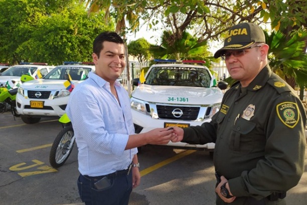 En un modesto evento realizado en el Comando de Policía Cesar, el señor Coronel Jesús Manuel de los Reyes Valencia, en representación del Director General de la Policía Nacional, entregó una moderna flota de vehículos al Cesar, los cuales fueron recibidos por el doctor Eduardo Campo Soto, Secretario de Gobierno Gobernación del Cesar.