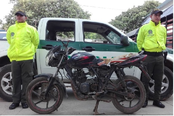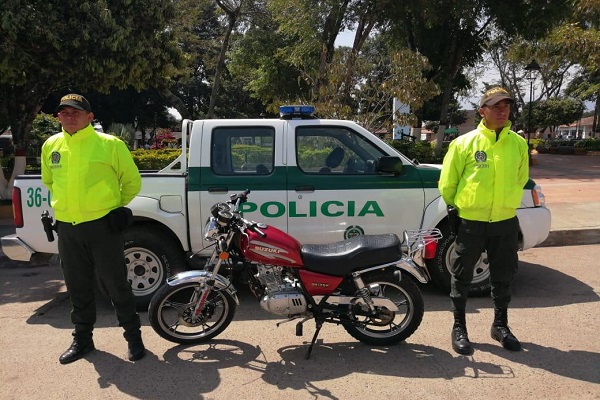En la vereda la Teja, zona rural del municipio de Ábrego, en desarrollo de labores de registro y solicitud de antecedentes el personal de la seccional de investigacion criminal recuperó una motocicleta marca Suzuki, la cual fue hallada en estado de abandono y al verificar en el sistema de información de la Policía Nacional, el el automotor estaba solicitado por el delito de hurto y fue puesta a disposición de la Fiscalía de Ocaña, autoridad solicitante.