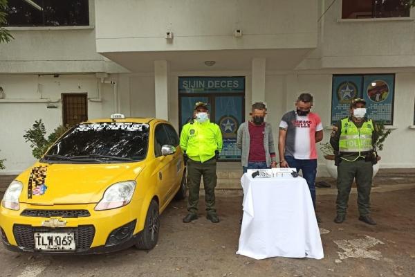 En atención a las actividades de control y contención del delito de homicidio, hurto y delitos conexos, unidades de la seccional de investigación criminal y reacción bancaria, mediante aportes de fuentes humanas, logran la captura de dos sujetos, los cuales se movilizaban en un vehículo taxi, portando un arma de fuego ilegal.
