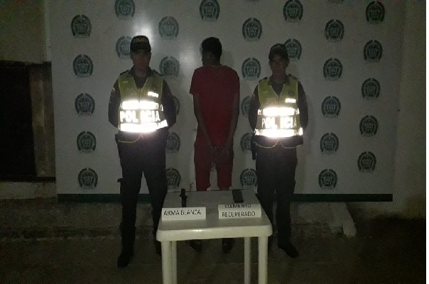 Mediante labores de patrullaje, personal del Modelo Nacional de Vigilancia Comunitaria por Cuadrantes, capturó en flagrancia a una persona de nacionalidad venezolana de 22 años de edad, quien momentos antes con un arma cortopunzante había hurtado un bolso con elementos personales y un celular a una señora natural y residente del municipio Ocaña. El capturado y los elementos fueron dejados a disposición de la Fiscalía General de la Nación y se adelanta el proceso de judicialización por el delito de Hurto.