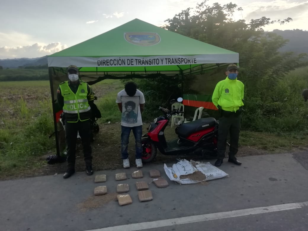En el procedimiento policial generó la incautación de la motocicleta, la sustancia alucinógena y la detención del hombre de 38 años de edad quien provenían del municipio de Pueblo Rico y se dirigía hacia La Virginia.