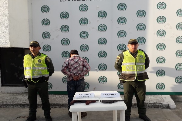En un operativo de control y prevención realizado en el sector ‘el Mercado’, personal del Modelo Nacional de Vigilancia Comunitaria por Cuadrantes, capturó en flagrancia a una persona de 61 años de edad, natural de ábrego, quien al momento del registro se le halló en su poder 2 escopetas de fabricación artesanal, calibre 22mm y calibre 16mm, sin permiso para porte o tenencia. El capturado y las armas de fuego fueron dejados a disposición de la Fiscalía Seccional de Ocaña para su respectiva judicialización por el delito de Fabricación, tráfico y porte de arma de fuego y munición.