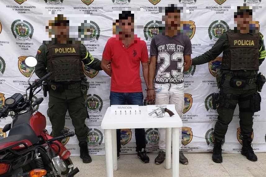 El primer procedimiento fue realizado sobre el kilómetro 4 vía Aguas Clara – Ocaña, sector Santa Inés, por policías adscritos a la Seccional de Tránsito y Trasporte, donde capturan a dos personas, momento que se movilizaban en una motocicleta, al ser requeridos por los uniformados se les halló en su poder un arma de fuego, tipo revolver, marca Taurus, calibre 38 especial de fabricación brasilera, con 06 cartuchos calibre 38, para el mismo; los capturados, el arma de fuego, munición y motocicleta incautada fueron dejados a disposición de la Fiscalía en turno.