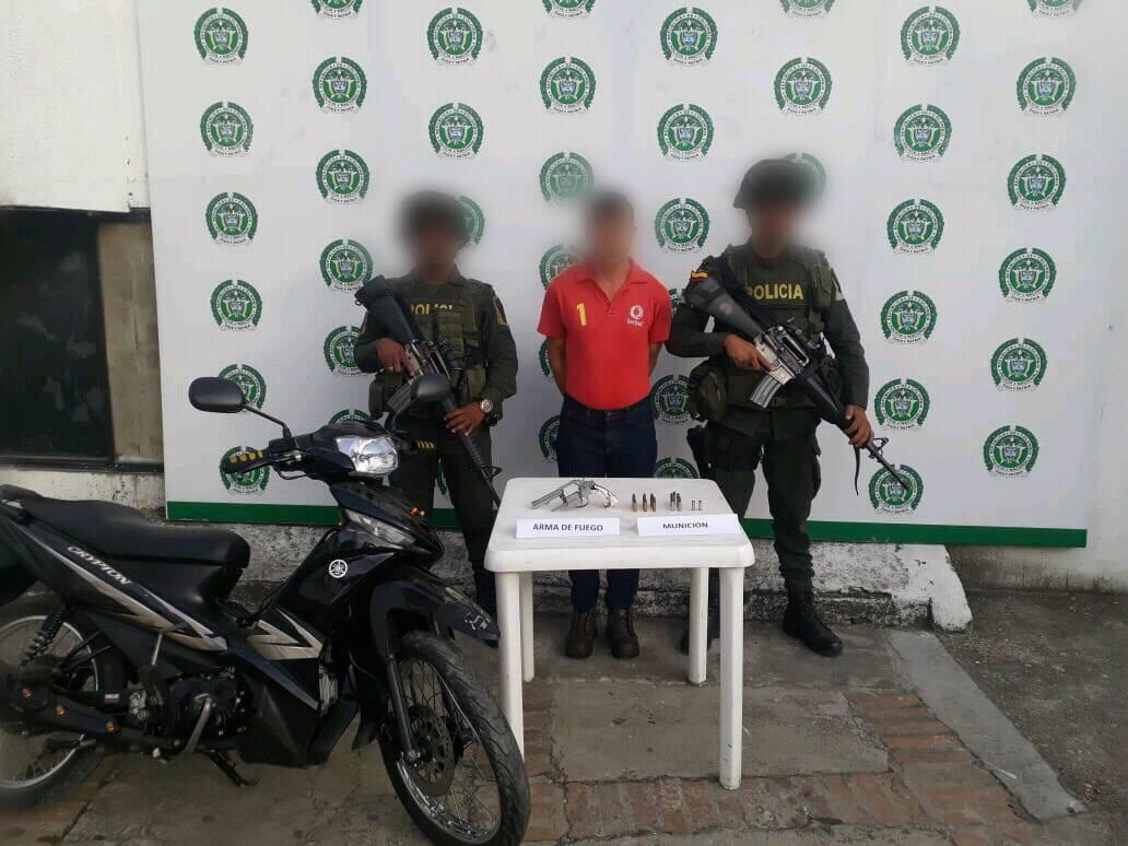 En otro sector del municipio, en operativos de registro y control desarrolladas por uniformados, se realiza la detención a un motorizado, continuando con el procedimiento, se le pide los documentos de la motocicleta Auteco pulsar modelo 2016, color roja, al realizarle la investigación de antecedentes del automotor, el sistema policial arroja que se encuentra requerida por el delito de Hurto, los uniformados materializan la captura de una persona, de 23 años de edad, oriundo de convención de Norte de Santander por el delito de Receptación.