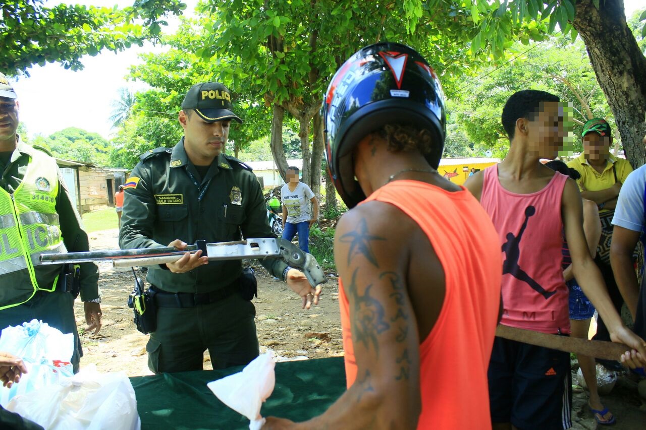 La Policía en esta región a través del grupo de Prevención y Educación Ciudadana, llegó hasta este barrio en la margen derecha del rio Guatapurí, a entregar mercados y colchonetas para 20 familias; así mismo organizó un plan desarme en el que varios jóvenes se unieron y entregaron sus armas como una muestra de reconciliación.