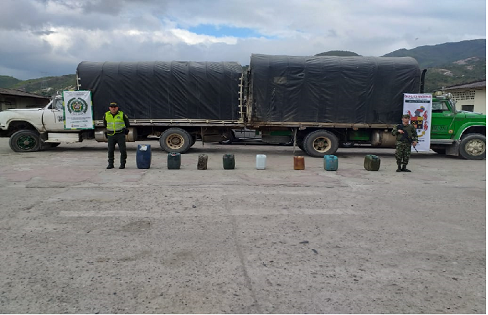 La Seccional de Tránsito y Transporte en coordinación con el Ejército Nacional detuvieron a dos vehículos tipo camión, en el momento de registro y verificación de los automotores se halló en sus interior 120 canecas con cuatro mil galones de ACPM avaluados en 28 millones de pesos, por lo cual los uniformados iniciaron el proceso de judicialización de estas personas por el delito de favorecimiento de contrabando de hidrocarburos o sus derivados; los capturados, el combustible incautados y los vehículos fueron puestos a disposición de la Fiscalía Seccional de Ocaña.