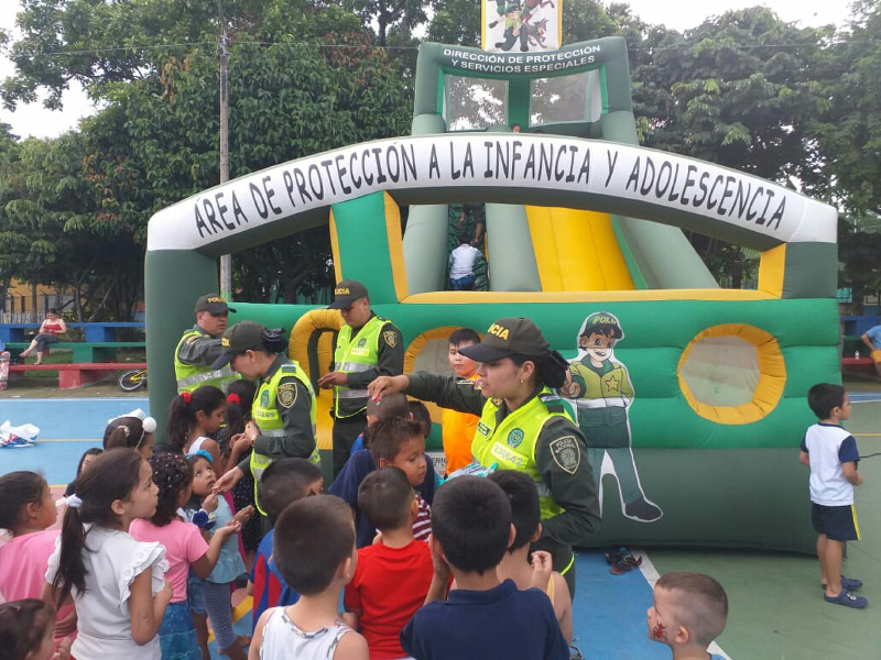 Esta vez la cita fue en el barrio Bello Horizonte donde los pequeños se recrearon a través del Dummy (inflable), actividad liderada por el grupo de infancia y adolescencia, además, participaron en juegos de competencias con su vecinos y amigos, generando los ganadores de la jornada recreativa. Nuestros uniformados pintaron sus caritas con mariposas, como símbolo de esperanza y amor; también realizaron charlas durante la actividad y estuvo encaminada a la línea de prevención del componente del Sistema de Responsabilidad Penal para Adolescentes a través de herramientas pedagógicas que lograron motivar e incentivar el compañerismo y fortalecimiento de los lazos de amistad entre los asistentes.