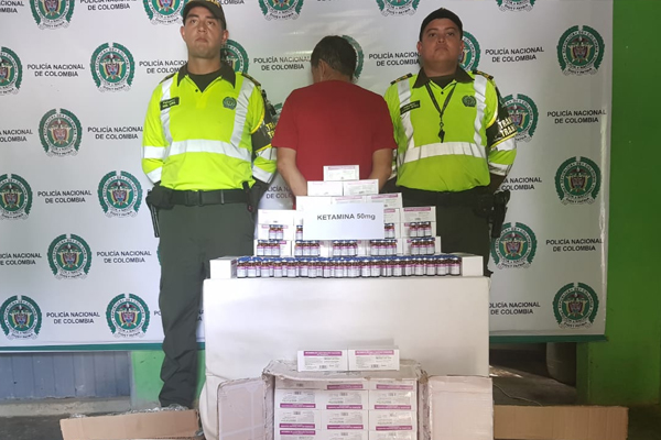 La Policía Nacional, a través de uniformados adscritos a la Seccional de Tránsito y Transporte de la Metropolitana de Santa Marta, y gracias a los controles que se vienen realizando en los diferentes ejes viales de acceso a la ciudad, logran la captura de un hombre de 60 años de edad y natural del municipio de San Miguel- Santander, cuando transportaba en un bus de servicio público 2.390 frascos de solución inyectable ‘Ketamina’.