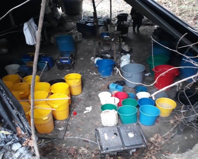 El complejo para el procesamiento del estupefaciente se encontraba a escasos metros de una fuente hídrica y al parecer los químicos eran transportados mediante semovientes hasta un determinado lugar y posteriormente lo terminaban de llevar mediante el uso de mangueras. En el lugar se encontraron: 1 gusano de 6 puestos, 3 plantas eléctricas, 4 hornos microondas, 1 centrifuga industrial, 2 marcianos, 1 prensa hidráulica, 1 estufa industrial y los siguientes insumos químicos: