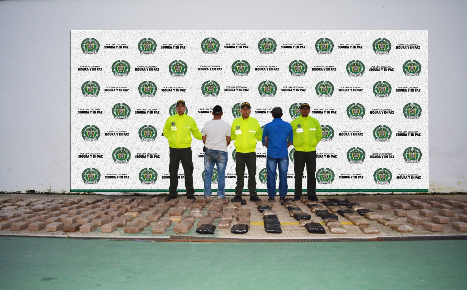 Durante la acción de las autoridades fueron capturados dos hombres de 39 y 31 años de edad, oriundos de Florencia – Caquetá y Puerto Santander respectivamente, quienes fueron sorprendidos custodiando un alijo de 224,5 kilos de marihuana prensada, la cual de acuerdo a las características de empaque corresponde a cultivos del ilícito ubicados en el departamento del Cauca.