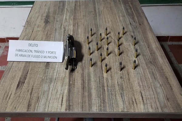 Los hechos se presentaron cuando nuestros uniformados realizaban labores de patrullaje, en el barrio Reposo, quienes notaron la actitud sospechosa de dos jóvenes que transitaban por el sector, de inmediato son requeridos por las patrullas del cuadrante para un registro, haciendo caso omiso a la orden y emprendiendo la huida, siendo alcanzados a pocos metros del lugar, hallándoles en su poder un arma de fuego tipo revolver calibre 38 mm marca Smith Wesson con 19 cartuchos para el mismo y sin permiso para porte o tenencia.