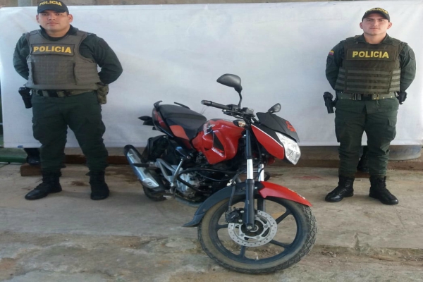 Conociéndose el primer caso en el kilómetro 33, vía Castilla-Girardot, vereda San Cayetano jurisdicción del municipio del GUAMO, lugar donde personal de la seccional de tránsito y transporte logró la recuperación de la motocicleta de placa SIN-39A, 125, color rojo, avaluada en $3.000.000 la cual se halló abandonada a un costado de la vía y al solicitarle antecedentes es requerida por la fiscalía 11 del Guamo por hurto. El rodante fue dejado a disposición de la autoridad solicitante.