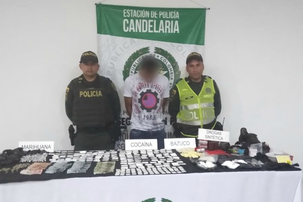 Por último, en una vivienda del barrio Santa Cruz de Medellín se registró la captura de un hombre de 39 años, a quien se le halló en un bolso color azul 150 cigarrillos de marihuana, 17 papeletas de base de cocaína y 58 papeletas de bazuco.