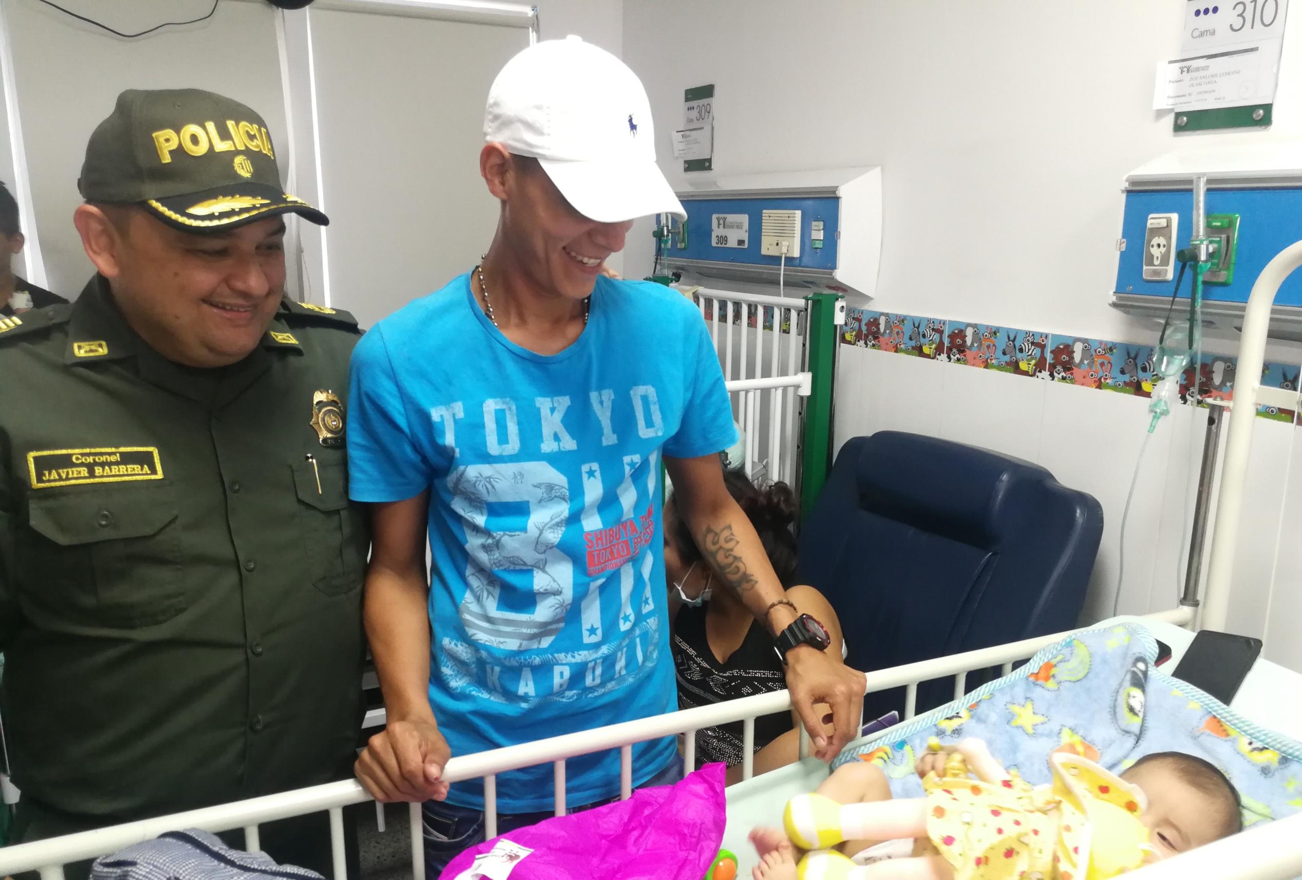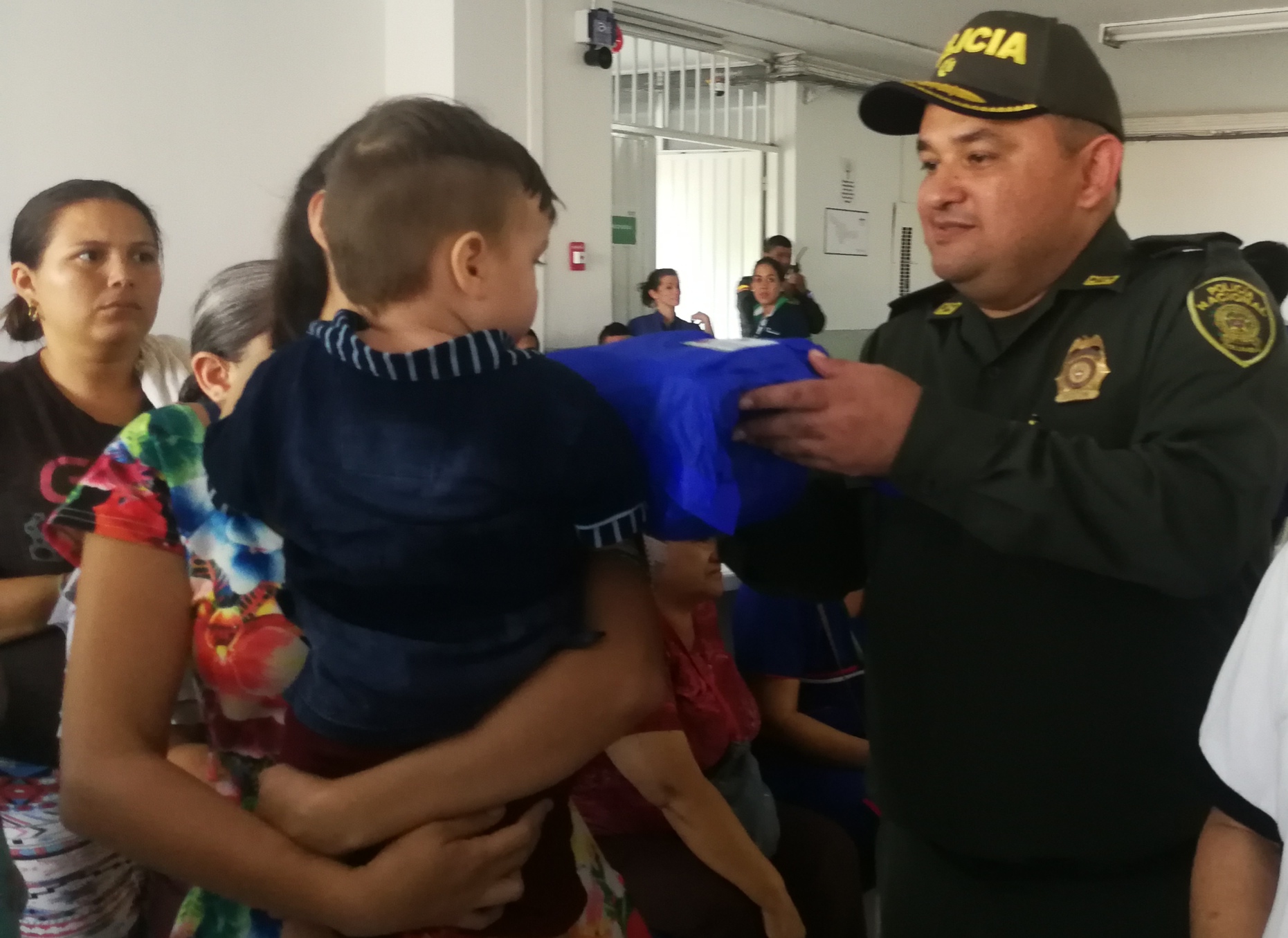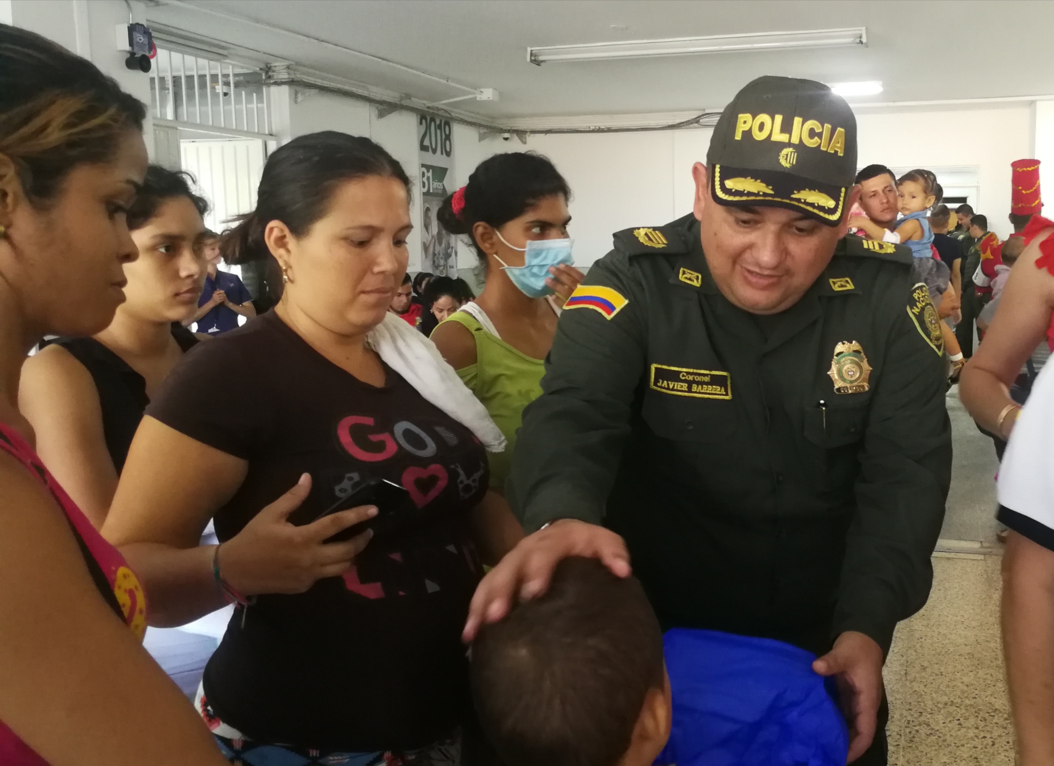 La época de navidad es el momento propicio para que uniformados de diferentes especialidades que integran la Policía Metropolitana de Cúcuta y en el despliegue al marco Plan Choque II ‘Navidad y Vacaciones Seguras’, más cerca del ciudadano, se dieran cita en el hospital Erasmo Meoz y sorprendieran con regalos a más de un centenar de niños y niñas que se encuentran en el centro asistencial.