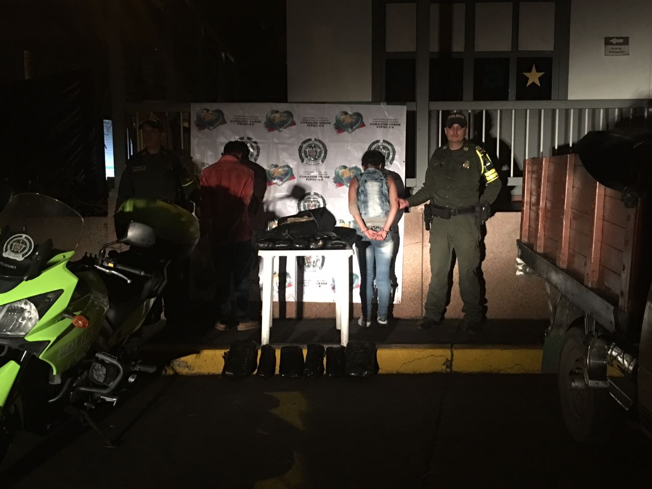 En el primer caso se captura en la vía Uribe-Calarcá a dos personas un hombre de 34 años de edad y una mujer de 20 años de edad quienes se movilizaban en un vehículo tipo camioneta de servicio público donde se les hallo bajo la carrocería 16 paquete de marihuana, así mismo, en el sector de la herradura son capturados dos sujetos de 38 y 18 años de edad, quienes se movilizaban en un bus interdepartamental que cubría la ruta Popayán – Bogotá con 10 kilos de marihuana, por otra parte, en el sector de la Paila _Armenia es capturado un sujeto de 41 años de edad, quien llevaba en unos bafles camuflado tres mil dosis de cocaína estas personas y las sustancias estupefacientes fueron puestas a disposición de la autoridad competente por el delito de tráfico fabricación y/o porte de estupefacientes