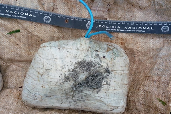 - Dos bultos de fibra cada uno con ocho kilos de explosivos cebado con cordón detonante.